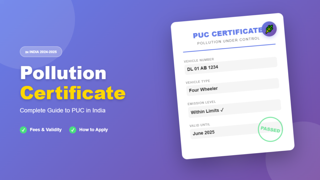 A Pollution Certificate, also known as a PUC Certificate, is a legal document that shows your vehicle is releasing pollution within the safe limit. Every vehicle in India, whether it is a two-wheeler, car, auto, taxi, truck or bus, must carry a valid PUC Certificate. This rule is made under the Motor Vehicles Act of 1988. The purpose is simple: vehicles should not release harmful smoke that harms the air.